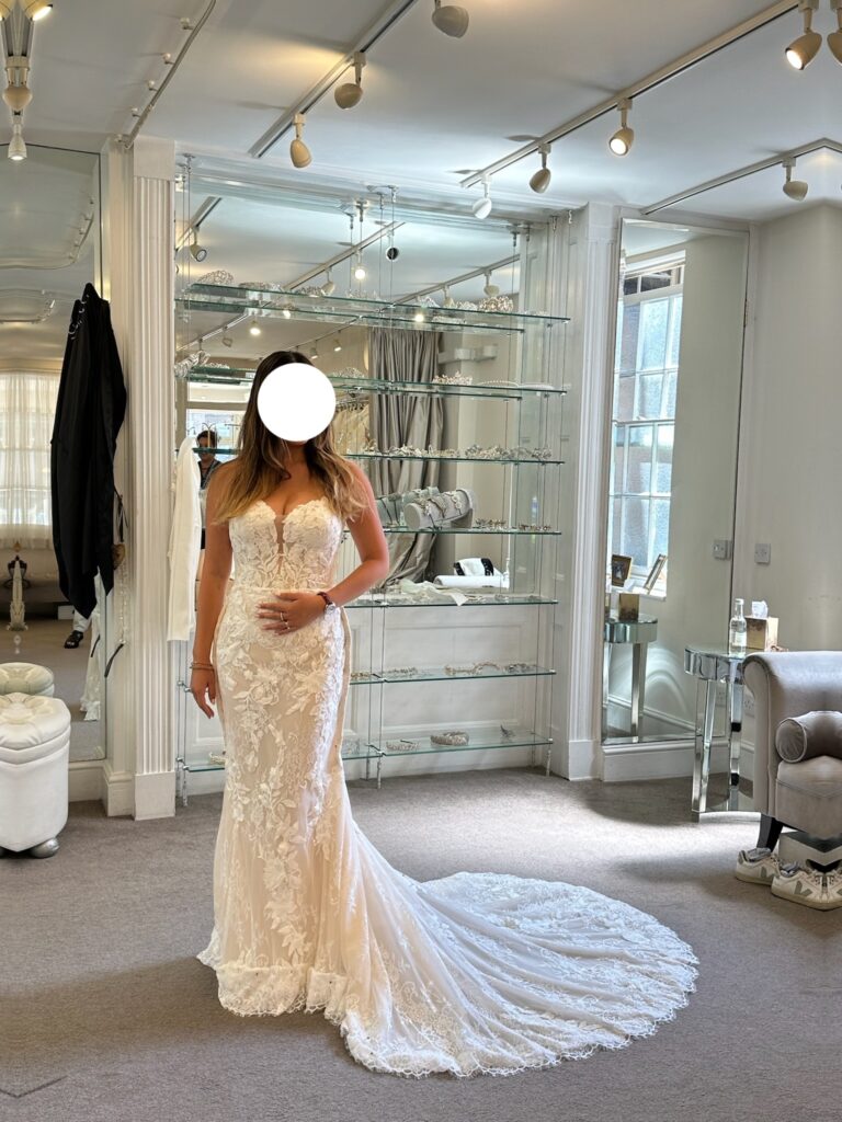 Having worn this stunning dress on one of the most memorable days of my life, I can assure you that it is not only beautiful but also comfortable, allowing you to celebrate all day and night. Whether you are planning an outdoor ceremony or a grand indoor celebration, this dress is sure to make you feel like a true bride. I hope it finds a new home where it can create unforgettable memories, just as it did for me.