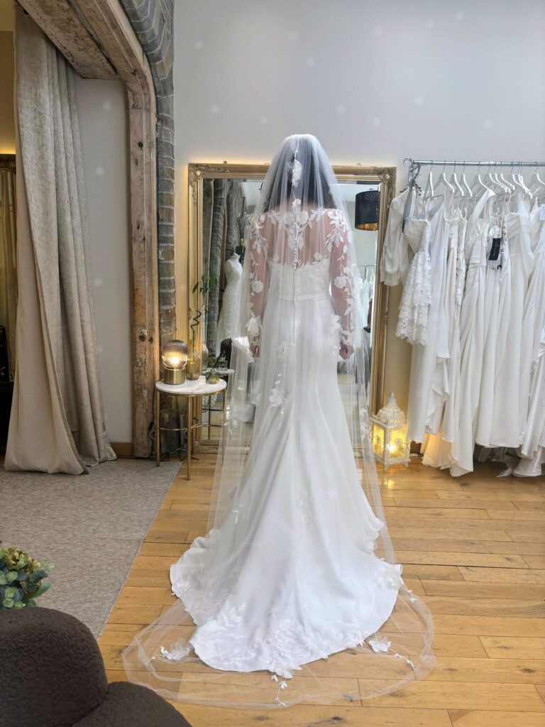 This graceful, romantic wedding dress from Romantica Collections combines classic elegance and modern style. With its beautifully crafted silhouette and refined detailing, this dress feels both timeless and contemporary.