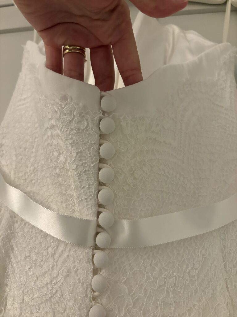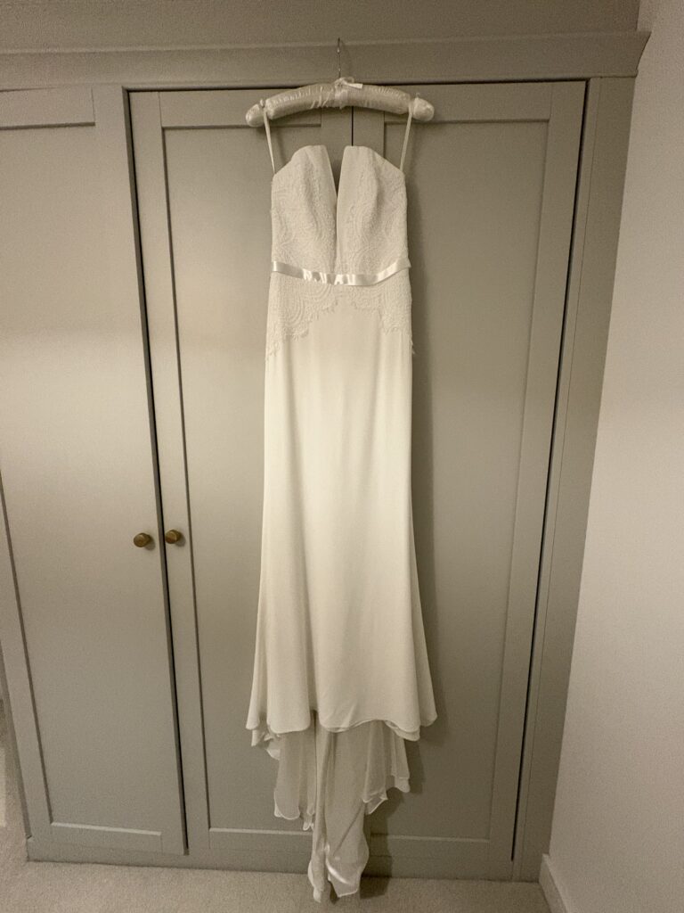 The skirt was shortened and hips taken out a little to allow for sitting down – comes with spare material if you’d like to make further adjustments